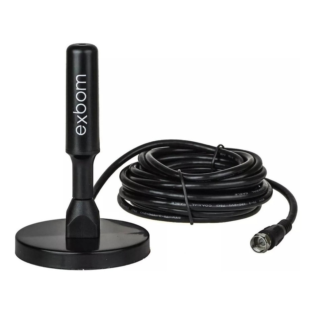 Antena Digital Amplificada para TV Digital 4dBI Interna e Externa HDTV UHF VHF Cabo 4 mts Base Magnética à Prova d'água - Exbom - Antena Interna - Magazine Luiza